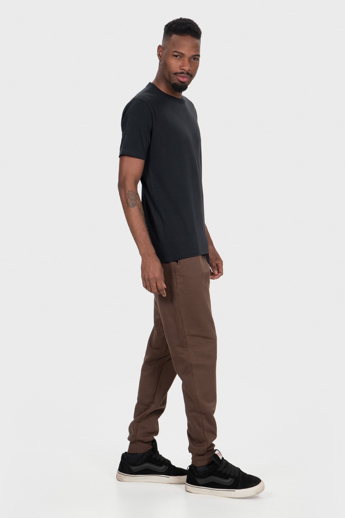 A Camiseta Cotton Básica é uma escolha clássica e confortável. Sua modelagem regular proporciona um ajuste versátil. Ela é confeccionada em malha de algodão de alta qualidade com 5% de elastano, o que a torna flexível e confortável. A peça possui gola careca com acabamento canelado, mangas curtas e caimento reto. Os detalhes de acabamento incluem pespontos nos ombros e na gola. A composição da camiseta é de 95% algodão e 5% elastano, oferecendo o equilíbrio perfeito entre estilo e conforto.