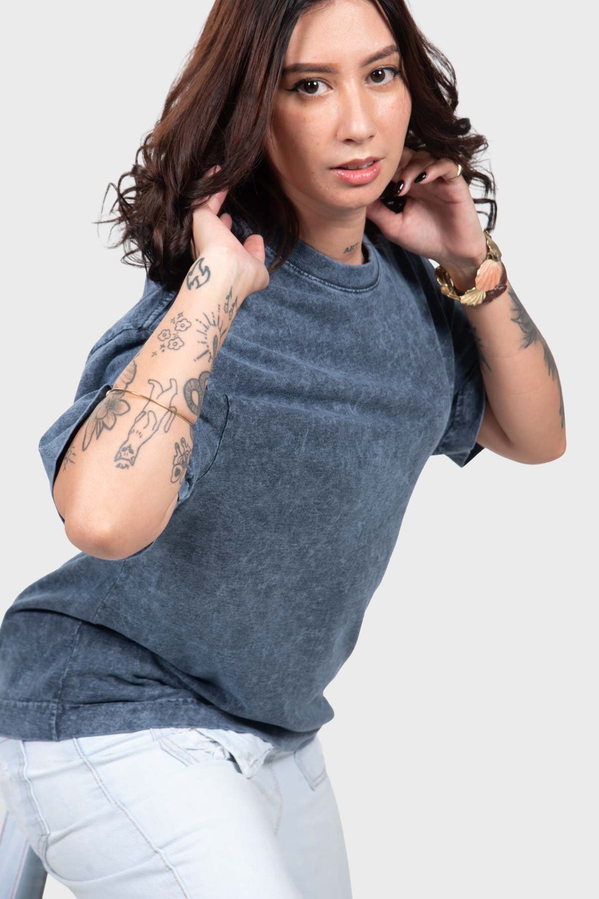 Camiseta Oversized Bulk Básica – Azul Marmore