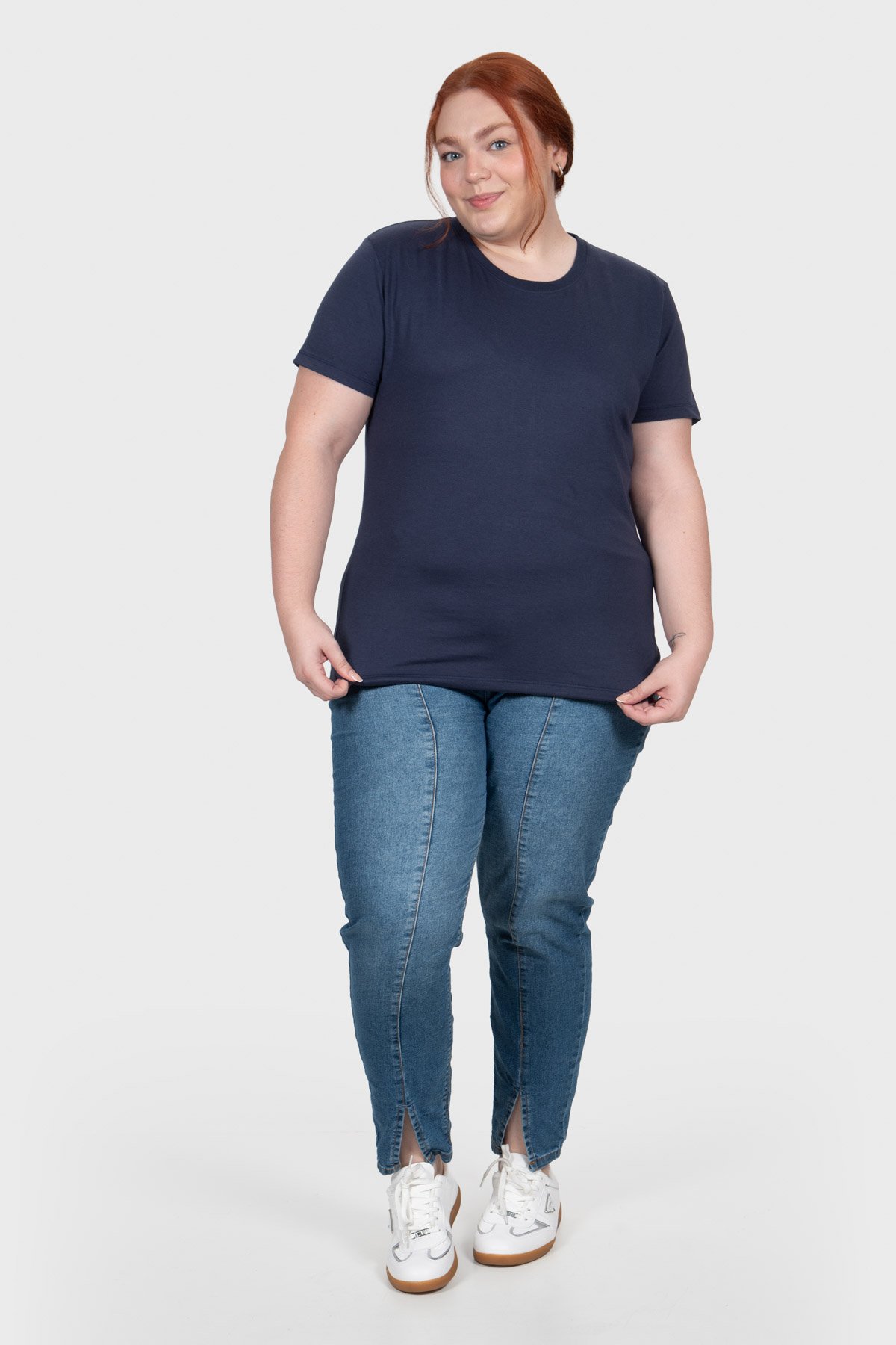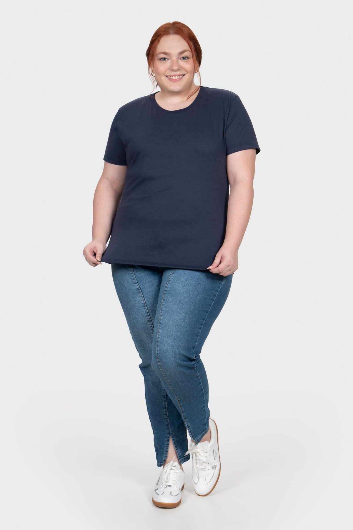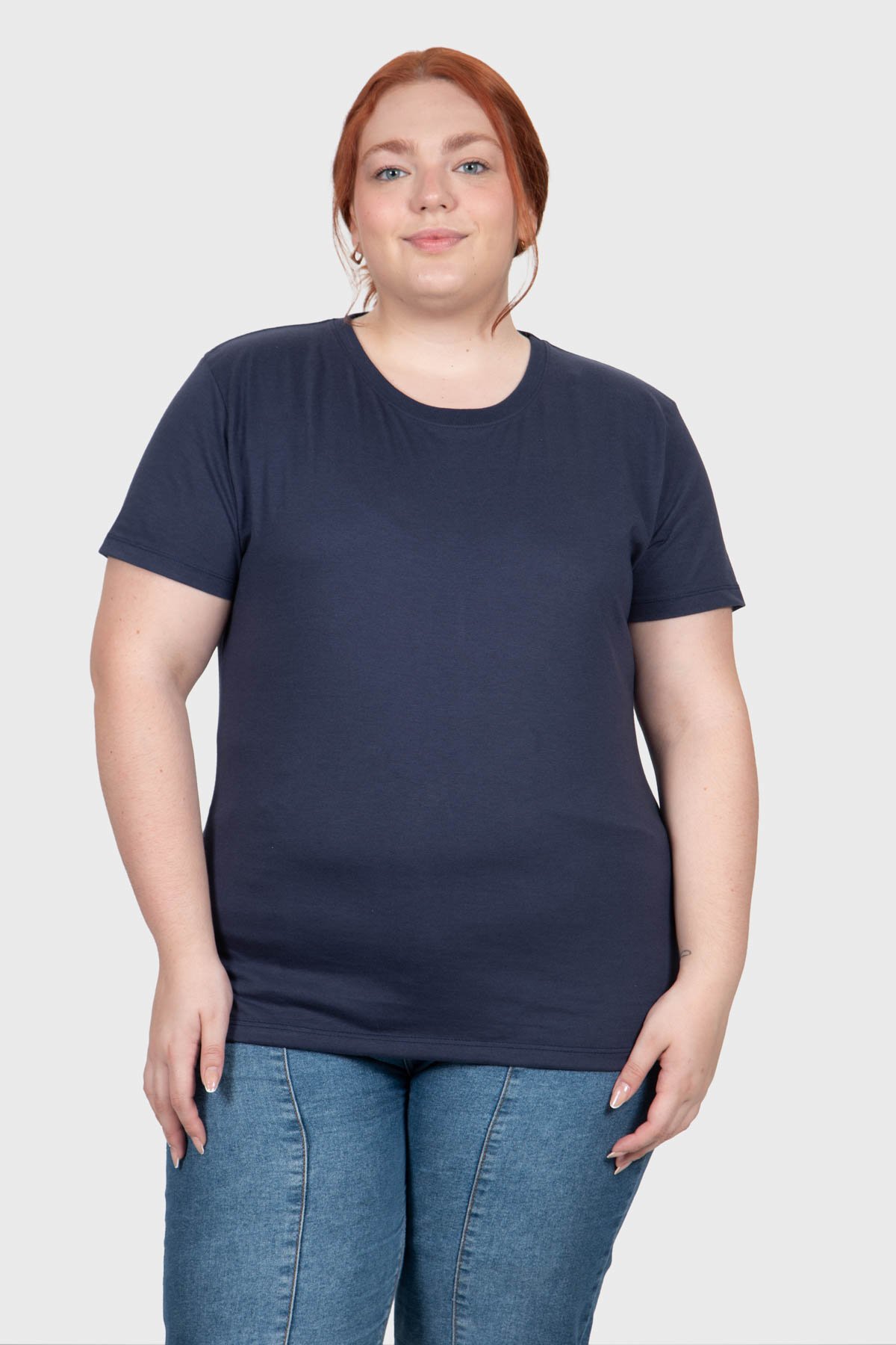 T-shirt Casual Essencial Básica Feminina Plus Size – Azul Marinho